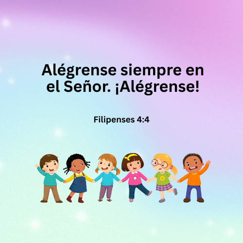 VERSÍCULO PARA MEMORIZAR: “Alégrense siempre en el Señor. ¡Alégrense!” Filipenses 4:4 [Puede imprimir la siguiente gráfica y entregarla a los niños con el versículo para memorizar.]